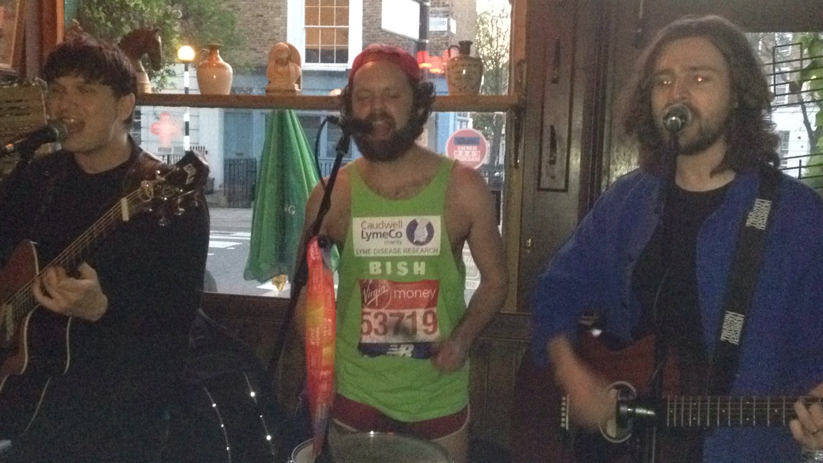 Despite the challenging run, musician Greg still found the energy to put on a highly enjoyable charity gig on the evening of the marathon, still wearing his Forrest Gump costume for the performance!